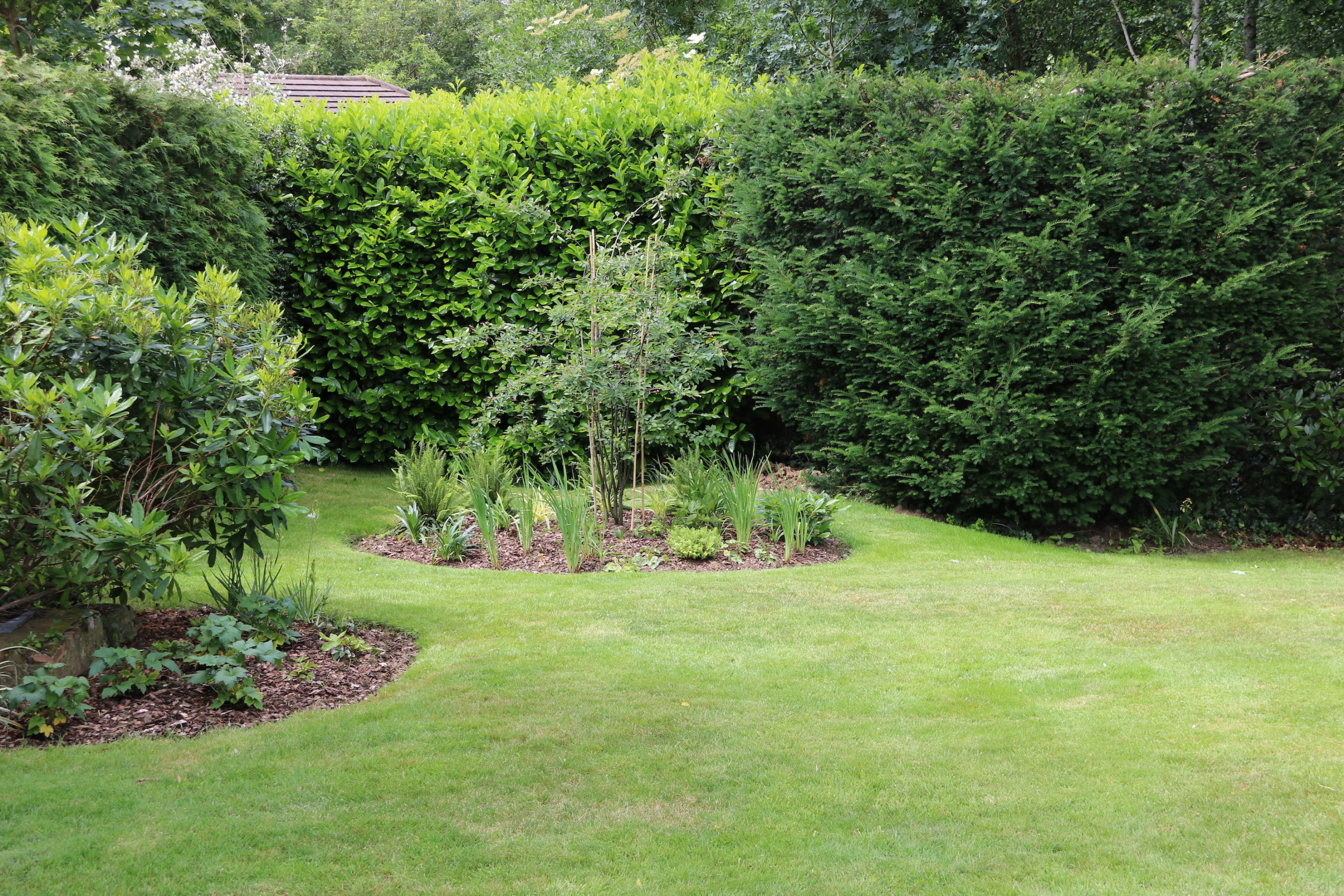 The second bed was created in the old space of a trampoline, with the aim to provide interest in a key focal point of the garden. A circular bed was created to soften the strong lines of the surrounding evergreen hedging, and planted to provide interest across the season including a central Amelanchier lamarckii.